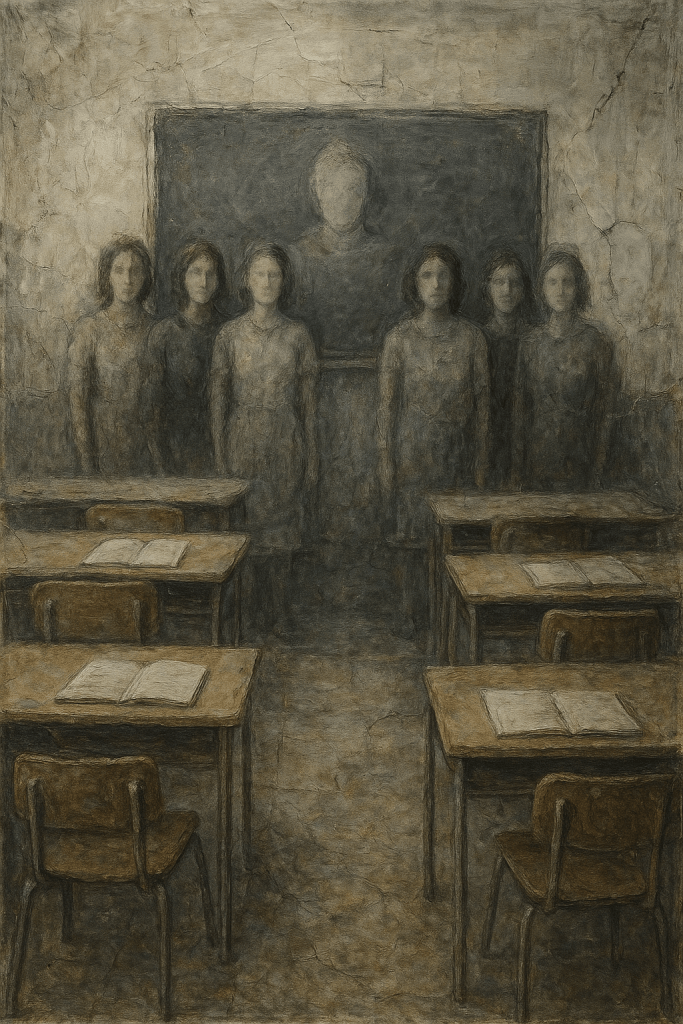 בעבודתה העכשווית לתערוכה "מורות מתות בסתר", היא מנסחת מבט קווירי-מחתרתי שנע בין רישום, מחיקה וחשיפה, ומציעה אפשרות לזיהוי עצמי שאינו זקוק לאישור ממלכתי. האמנית האלמונית פועלת כדמות בהיעשות מתמדת — תנועה ללא זהות, קו־בריחה במישור האימננטיות. עבודתה חושפת את המנגנון שמוחק מורות, ובו בזמן מתהווה כעדות חיה לכך שהיעלמות יכולה להיות גם התנגדות.