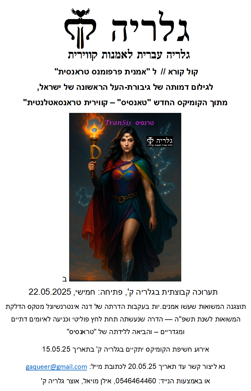 דדליין להגשה: 15.05.2025 בחצות לכתובת מייל: gaqueer@gmail.com