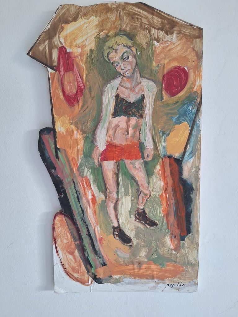 האמנות שאני יוצר הנה חלק בלתי נפרד מתהליכי המחשבה וההחלטה הקשורים לאופי התערוכות. לפני כחודשים יצרתי את 'ישראל אהובתי', אמנות שעשויה על משטח עץ אלון שמצאתי בפאתי הדרך. הטכניקה בה השתמשתי היא מעורבת: פיגמנטים, דבקים טבעיים שונים, וגבישי נתרן כלורי שרקחתי בעצמי במשך חודשים ארוכים כחלק ממחקר העוסק בשימור. השתמשתי גם ברדי-מייד: שושן צחור ממשי ומחצב טבעי שאספתי מהטבע. ביצירה מתוארת הפשטה חלקית של מפת ארץ ישראל, כפיסה המייצגת את ההבטחה האלוהית בברכת השושן שנצבע בכחול-לבן ופרחו מתנוסס בקודקודי גבולותיו הצפוניים ביותר. במקביל, בהתבוננות קווירית נחשף פות, בהמשך ל"מקור העולם" מהותו וגורלו, המייצג את התשוקה הזכרית הבלתי ניתנת לשליטה לכבוש את גבולותיה של ישראל הקטנה.