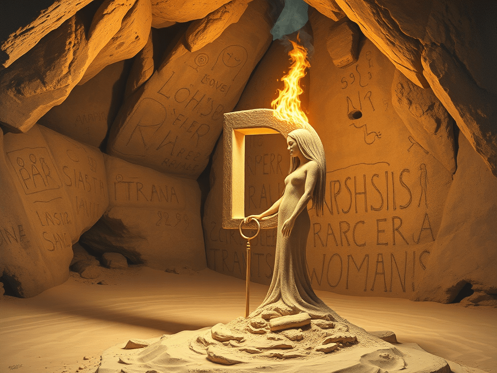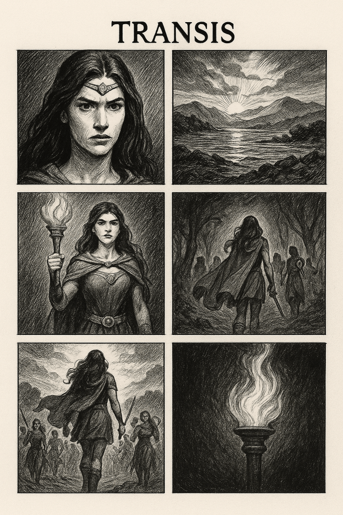 גלריה ק' ( שפחתכן הנאמנה ) בחרה בשלושה דימויים מתוך עשרות, כדי ליצור מעין סדרה מינימליסטית המצורפת בהמשך, שנוצרה בניסיונות להבין את אופן היעשותה של "טראנסיס" המיתולוגית בתהליך ההתאמה המגדרית שעברה בתוך המערה הסגורה. מהלך שהוסתר בפני העולם, מבלי ידיעת נפש אנושית אחת, עד לרגע מעמד הדלקת המשואה של דנה וברכתה המרגשת לילדי העולם, אל מול תפילות כל מי שהתנגד לקיום המעשה וחולל את הניצוץ האנרגטי היחיד שיכול היה להקים את רוחה של "טראנסיס" אחרי אלפי שנים: שנאת אחים בישראל, שלא באשמתם אלא באשמת גדול הצוררים.*