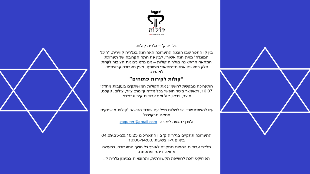"קולות" גלריה ק' לאמנות מחאה – לחצו להגשה