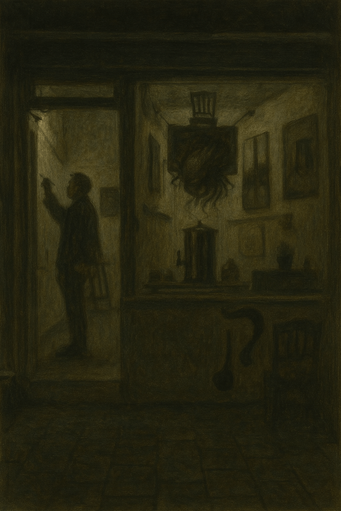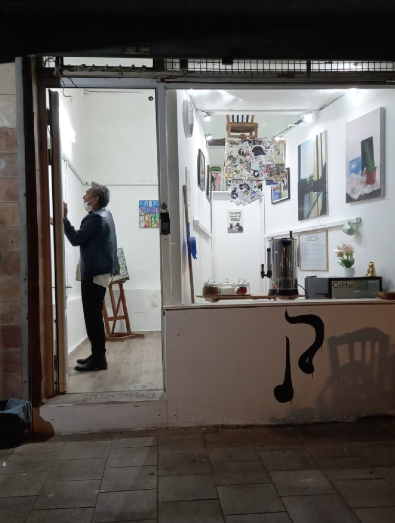 הדימוי נולד מתוך צילום תיעודי, רגע לפני פתיחת התערוכה, שבו מופיע אוצר התערוכה עצמו — מבלי לדעת שהוא כבר חלק מן היצירה.