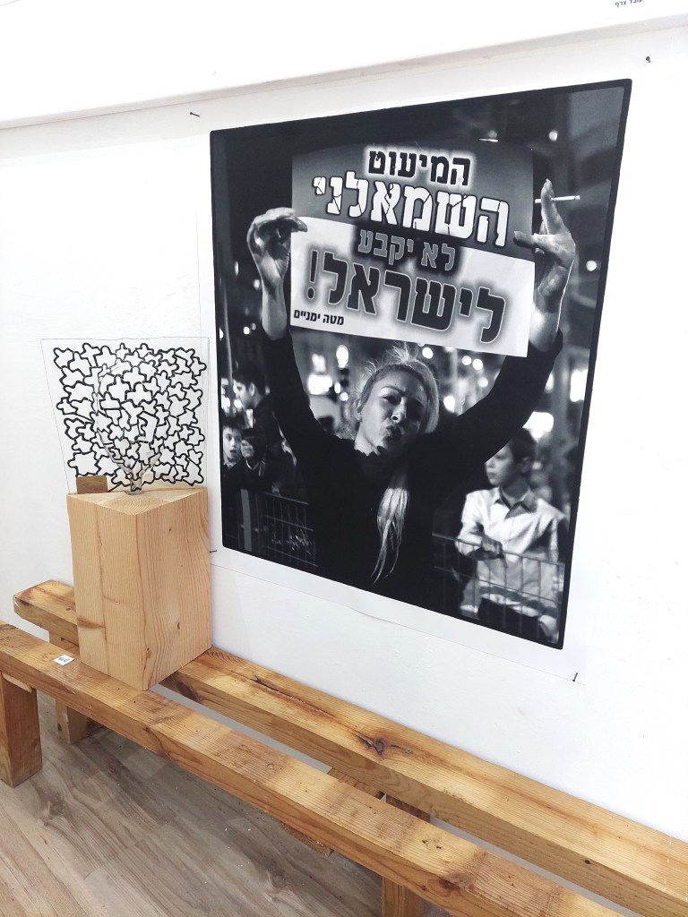 מציגה בתערוכה זו שיר מחאה המופיע כמקבץ של אמירות המחברות באופן חזותי בין האמן ומהות המחשבה אל-מול העשייה, ובין תפקידה של האמנות בתוך פוליטיקה של מלחמה במציאות של ישראל. השיר מתכתב עם אמנות מושגית וחושף את המתח בין המקומי לבינלאומי בתוך אמנות ויצירה שנועדו להתהוות בסביבה מפרה ומאפשרת, מתנגשות במחסום של חרם ונידוי. דימויים העולים מהשיר מאוירים ברגישות של מכחול דיו ואקוורל ישירות על גבי הטקסט המודפס ככרזה, פותחים אותו לשדות רב תרבותיים ונוגעים במעבר מהאינטימי לחשוף.