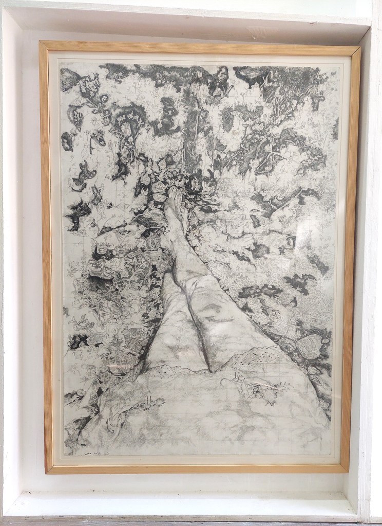רישום שנוצר במיוחד עבור התערוכה. דמות קדמית החושפת את ליבה עומדת מול רקע של פרצופים וקולות — מערכת הצופה, צורכת ומתעלמת. העבודה מצביעה על המחיר הרגשי של השתתפות במנגנון תרבותי רחב ועל הפער בין ייצוג כן לבין ציניות ושימוש פוליטי במופע.