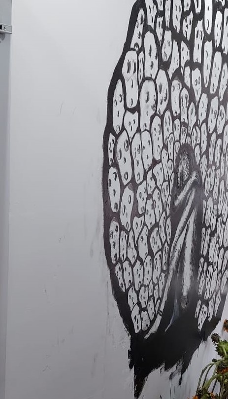 דוריה שרה, הגנן 2024, מחווה לאוצר אילן מויאל צויר כמתנה לאוצר התערוכה "אנחנו", שהוצגה בגלריה ק' בפברואר 2025..