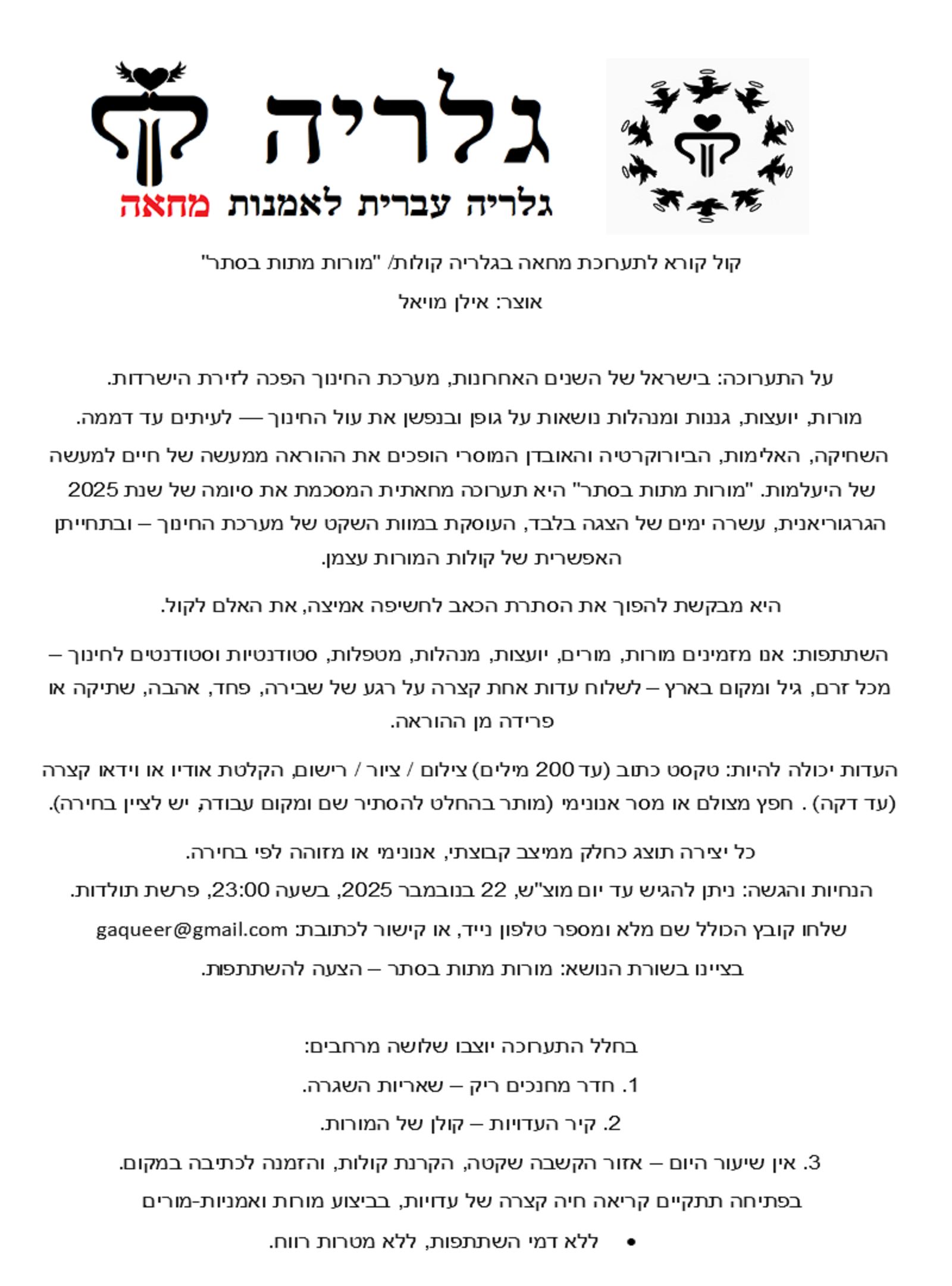 קול קורא לתערוכת מחאה קבוצתית: "מורות מתות בסתר"