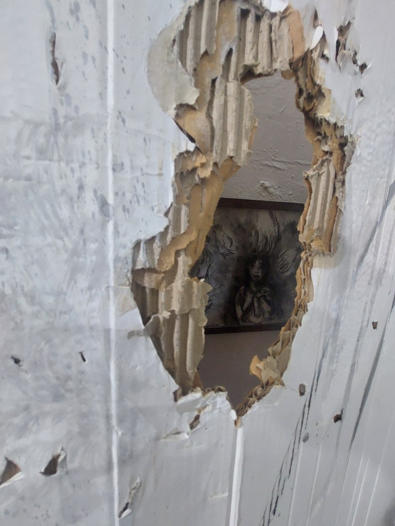 נועה ארגמני שנחטפה לרצועת עזה. צילום: ללא הרישום נוצר כחלק מתערוכת המחאה "להרוג אייל קדוש" בגלריה ק' שנפתחה בתאריך 01.11.23 בקריאה להשבת החטופים, מתוך צילום חטיפתה של נעה ארגמני, המושיטה ידה לעזרה. בהתבוננות מאוחרת היצירה טומנת בתוכה מסר: “הטראומה הלאומית מהדהדת.”