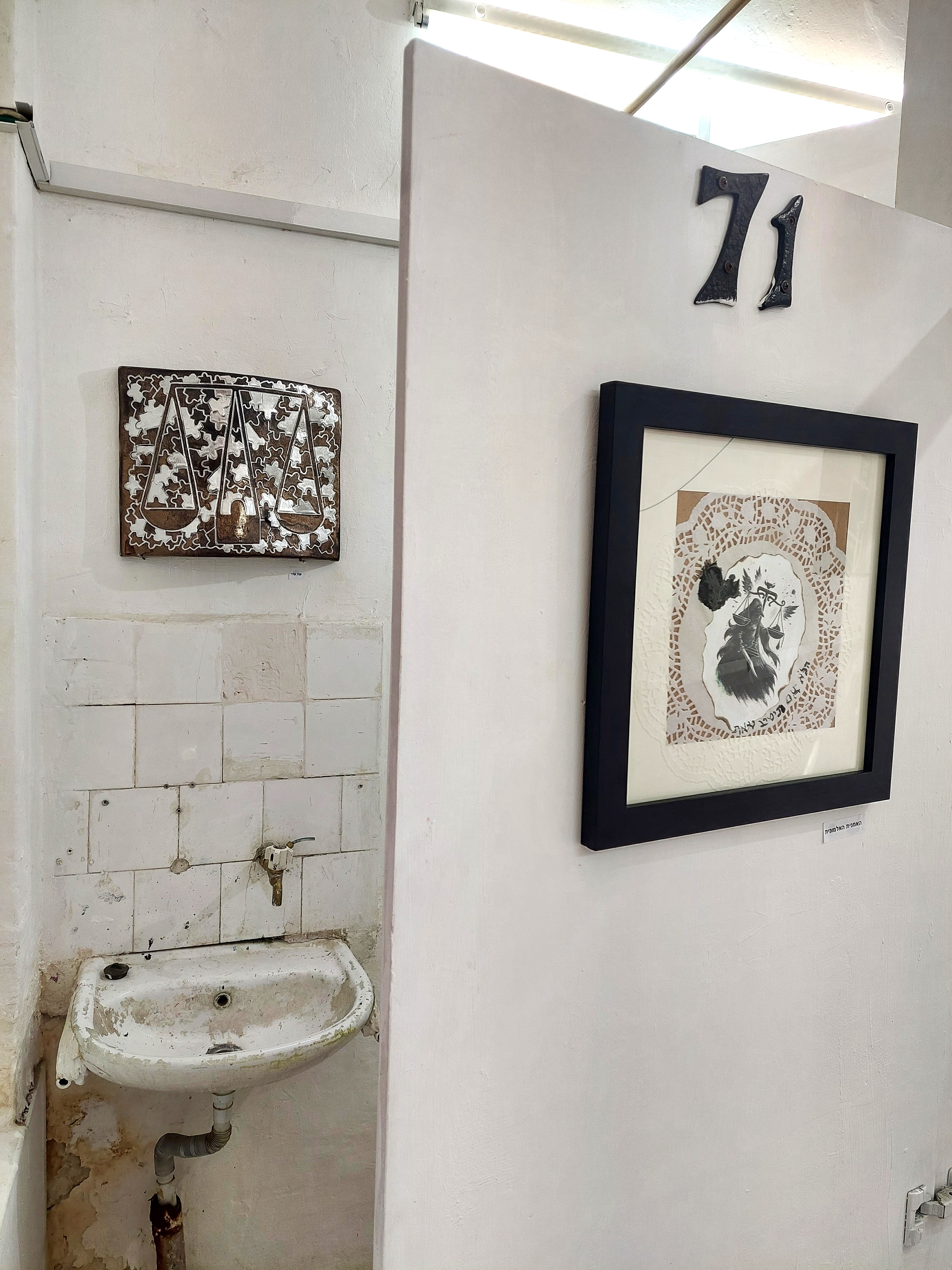התערוכה “החטא ועונשו(?)” נפתחת מתוך עיסוק בדימויי הכרעה — מאזניים, גוף, סמכות — אך מפרקת אותם מבפנים. אין כאן הצעה לצדק מתוקן, אלא בחינה של האופן שבו מושגים כמו מוסר, אשמה וחנינה נשחקים, מתהפכים ולעיתים משמשים ככלי של שליטה והשתקה.