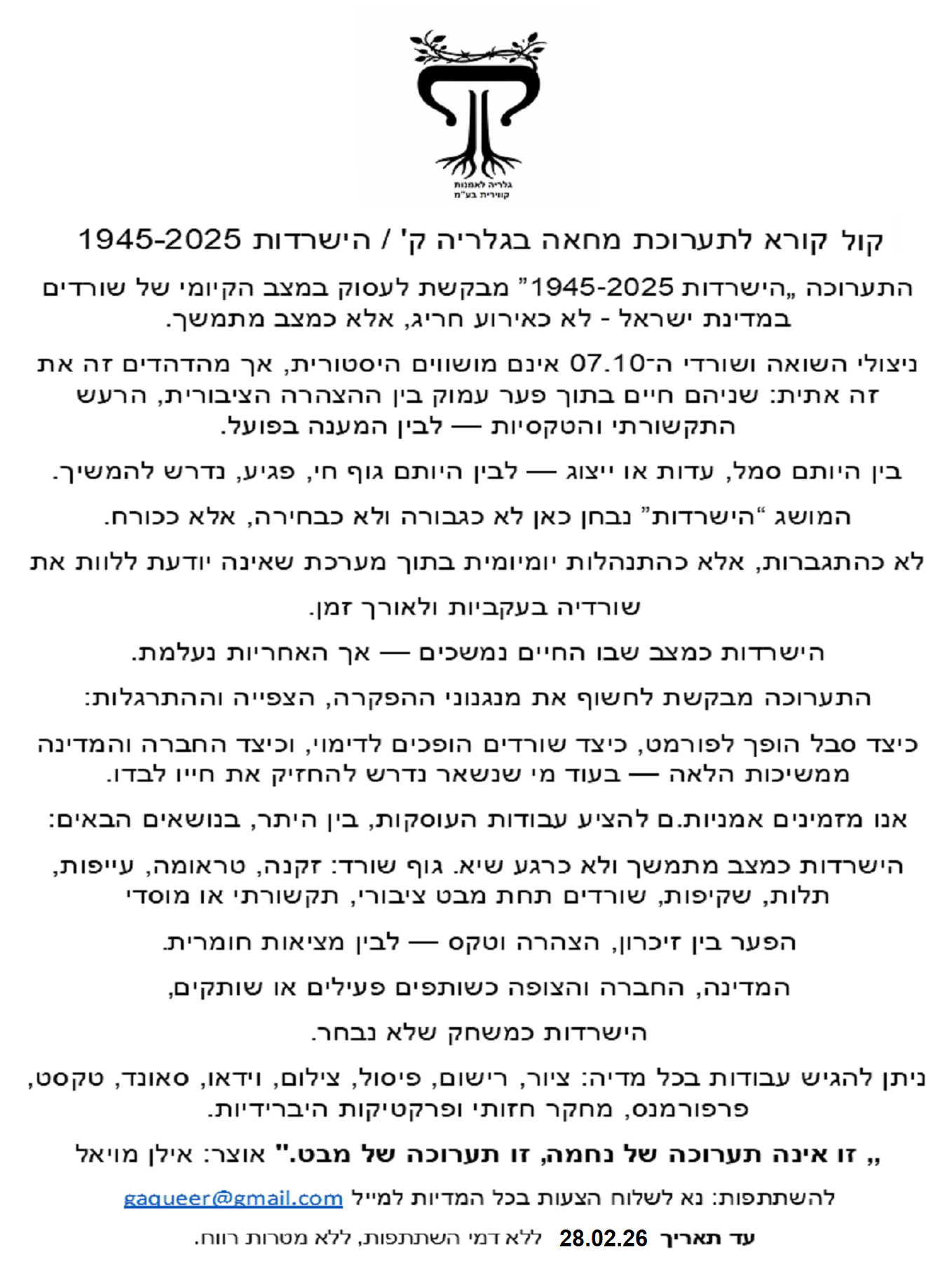 קול קורא לתערוכה "הישרדות 1945-2025"